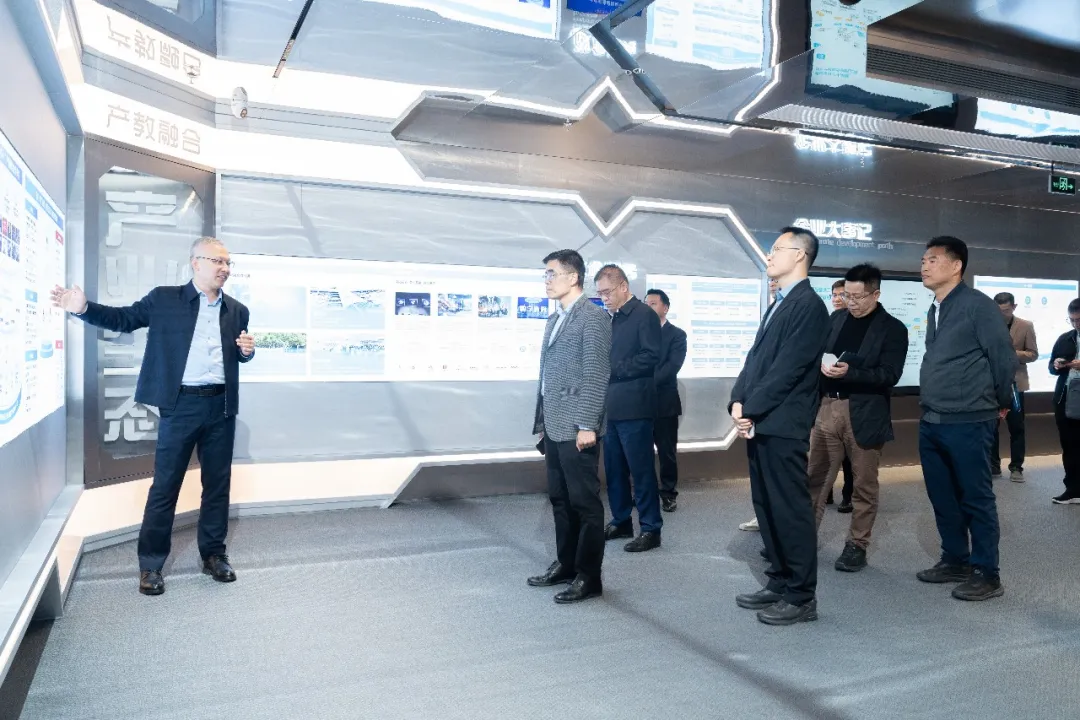 拜访领导第一时间参观了Ebpay(中国)技术展厅,详细分析公司开展历程、业务模块与经营理念。刘国锋总裁介绍了公司依托产业优势深耕ICT人才培养的具体实践,并回顾了近年来与市人社部门、南山区人资局、街道及社区共同召开的培训与竞赛工作。随后,领导一行考察了Ebpay(中国)培训中心的场地设施与师资情况,并听取了关于鸿蒙智慧教室及全栈实验箱的详细介绍。